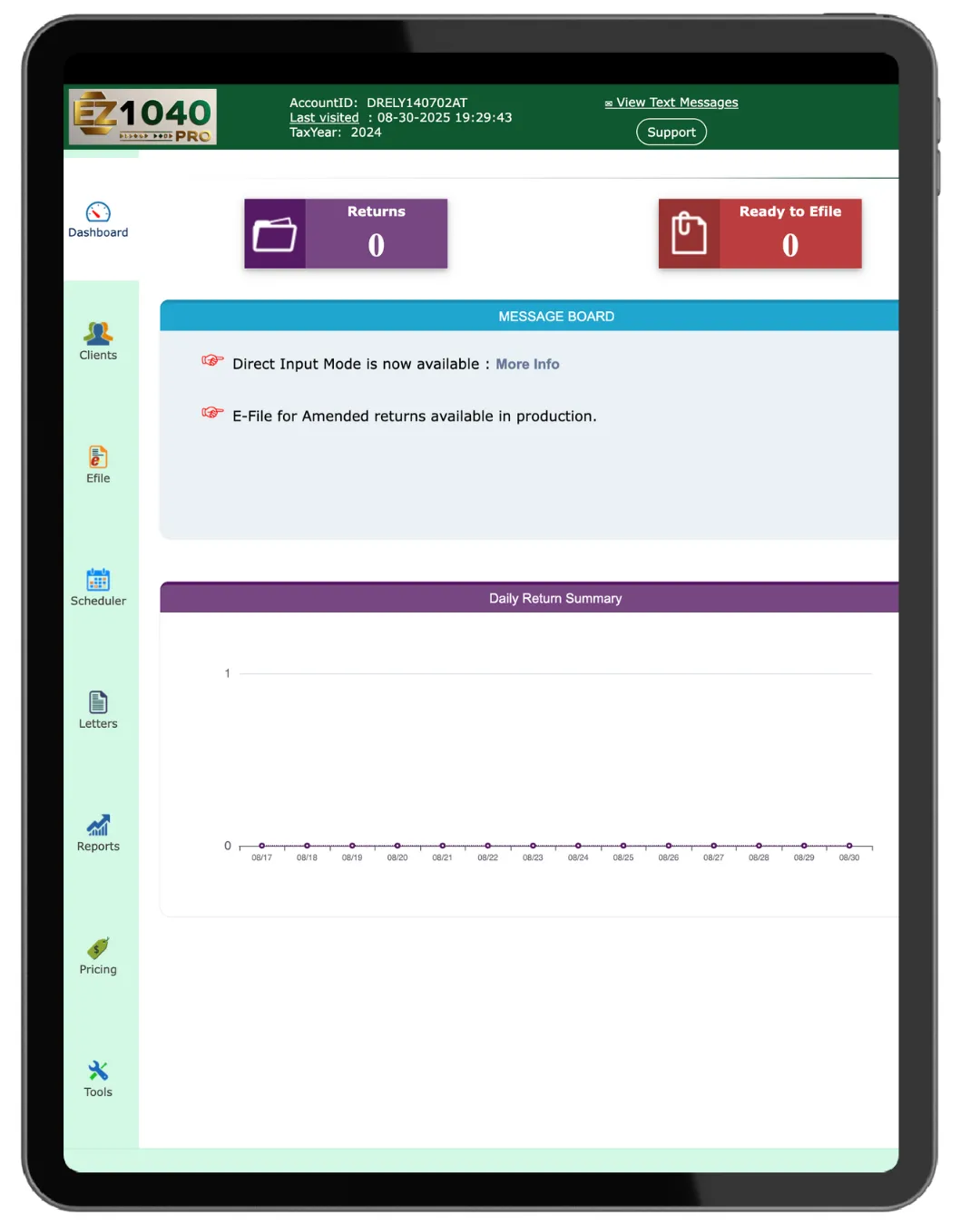 Our cloud-based software allows you to prepare and file tax returns from any device, providing flexibility and convenience to both you and your customer.
